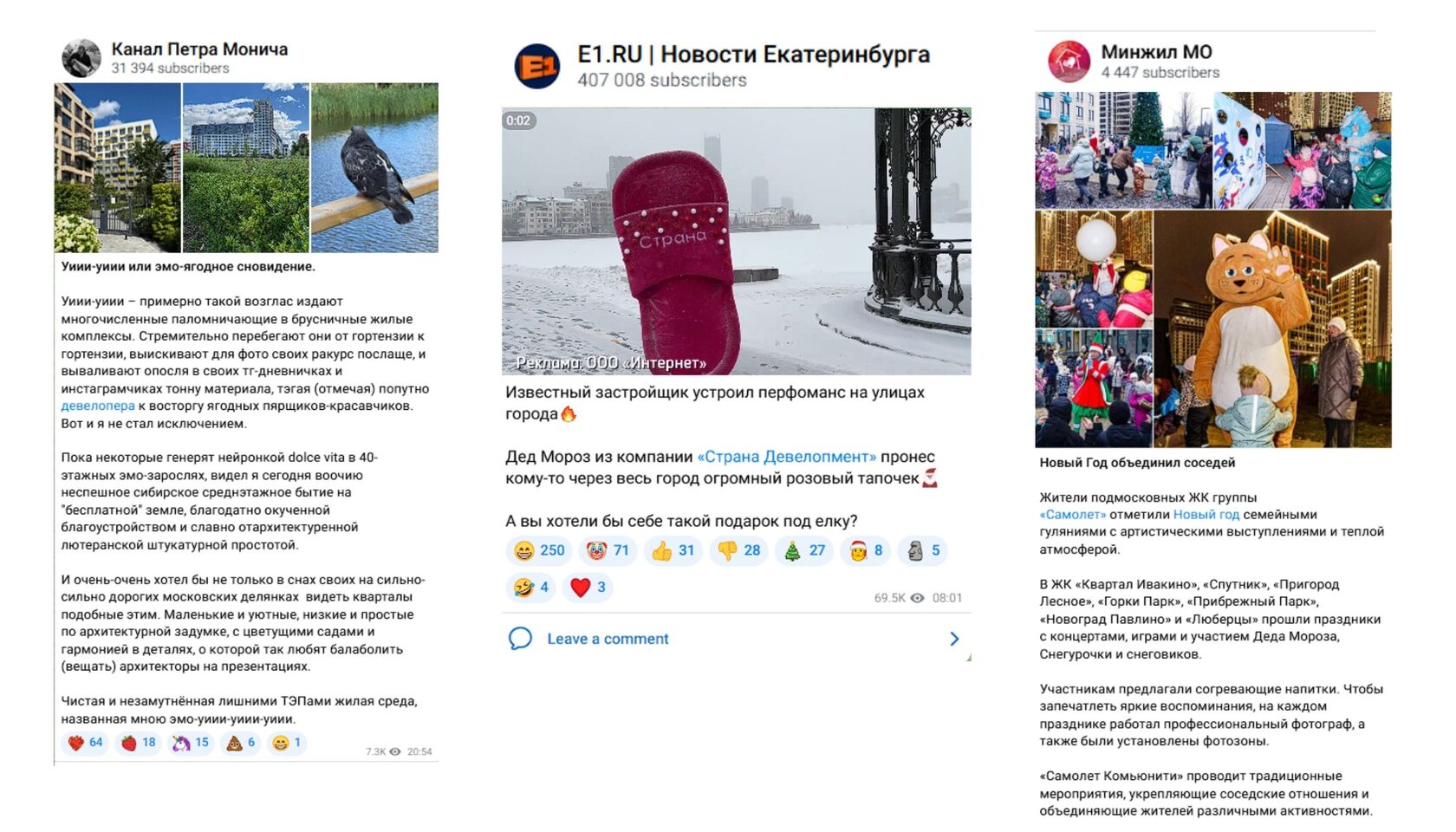 От лирических описаний кварталов, перфоманс-маркетинга до новостей о праздничных мероприятиях