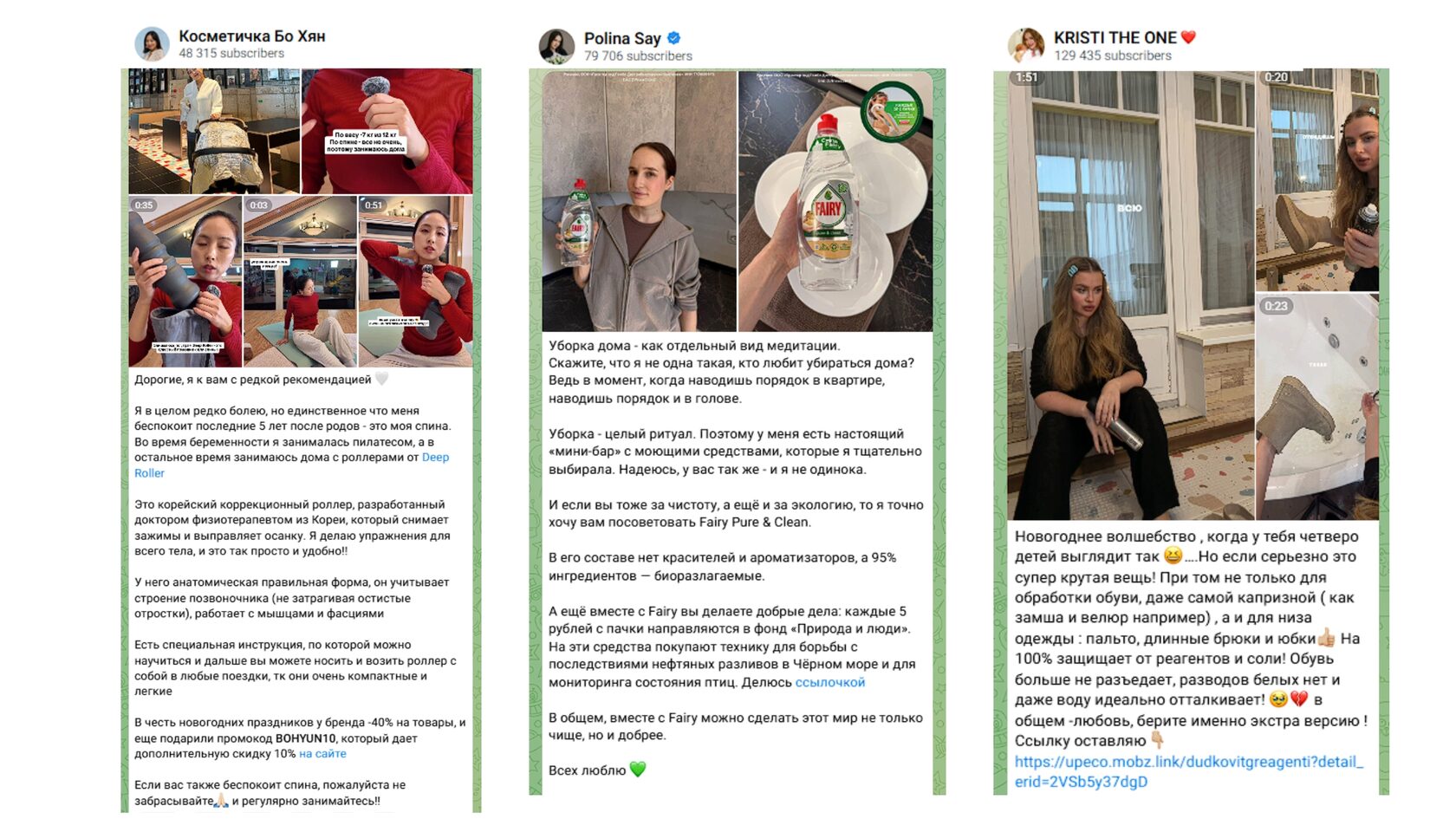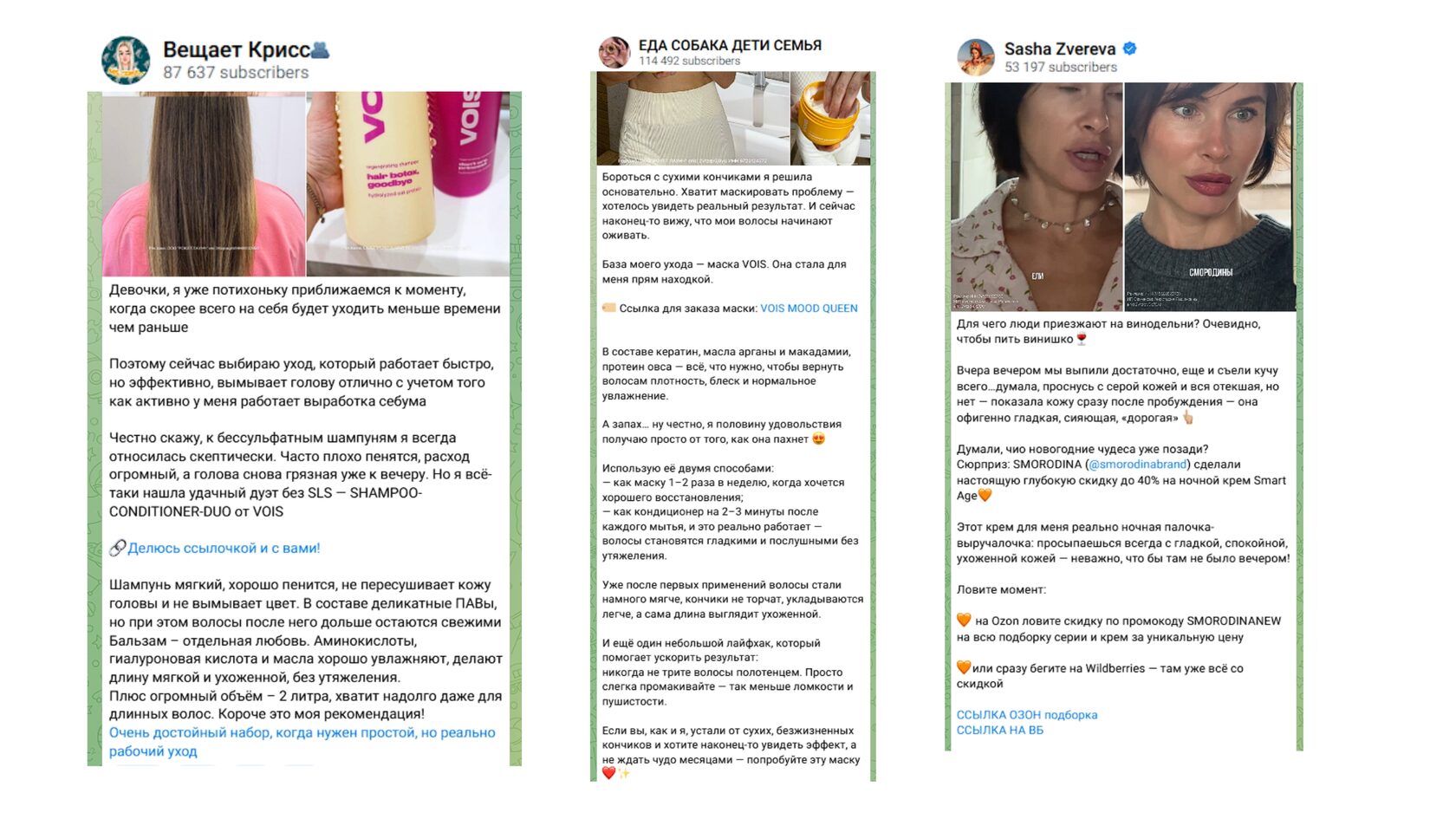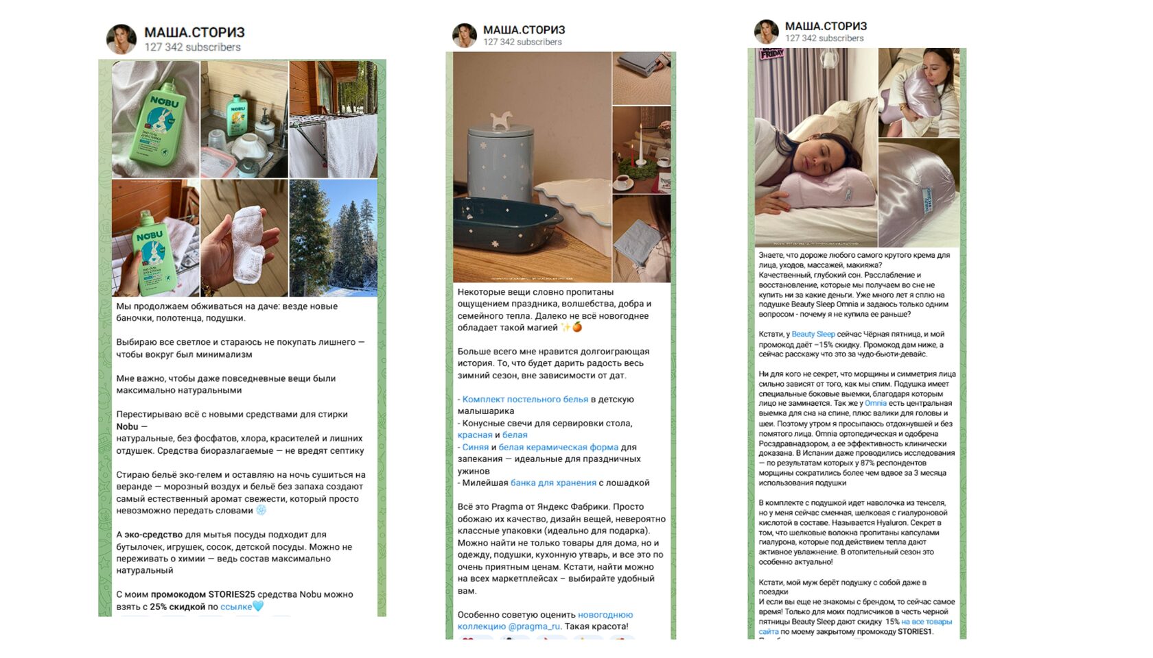 Работает такая реклама часто следующим образом: автору присылают товар для тестирования. После изучения он выкладывает у себя в канале честный (или почти) отзыв на изделие. Продвигаться может любая продукция: текстиль, хозтовары, домашний декор, косметика для ванной, мелкая бытовая техника и т.д. Как правило, в таком посте есть ссылка на интернет-магазин или артикул на маркетплейсе.